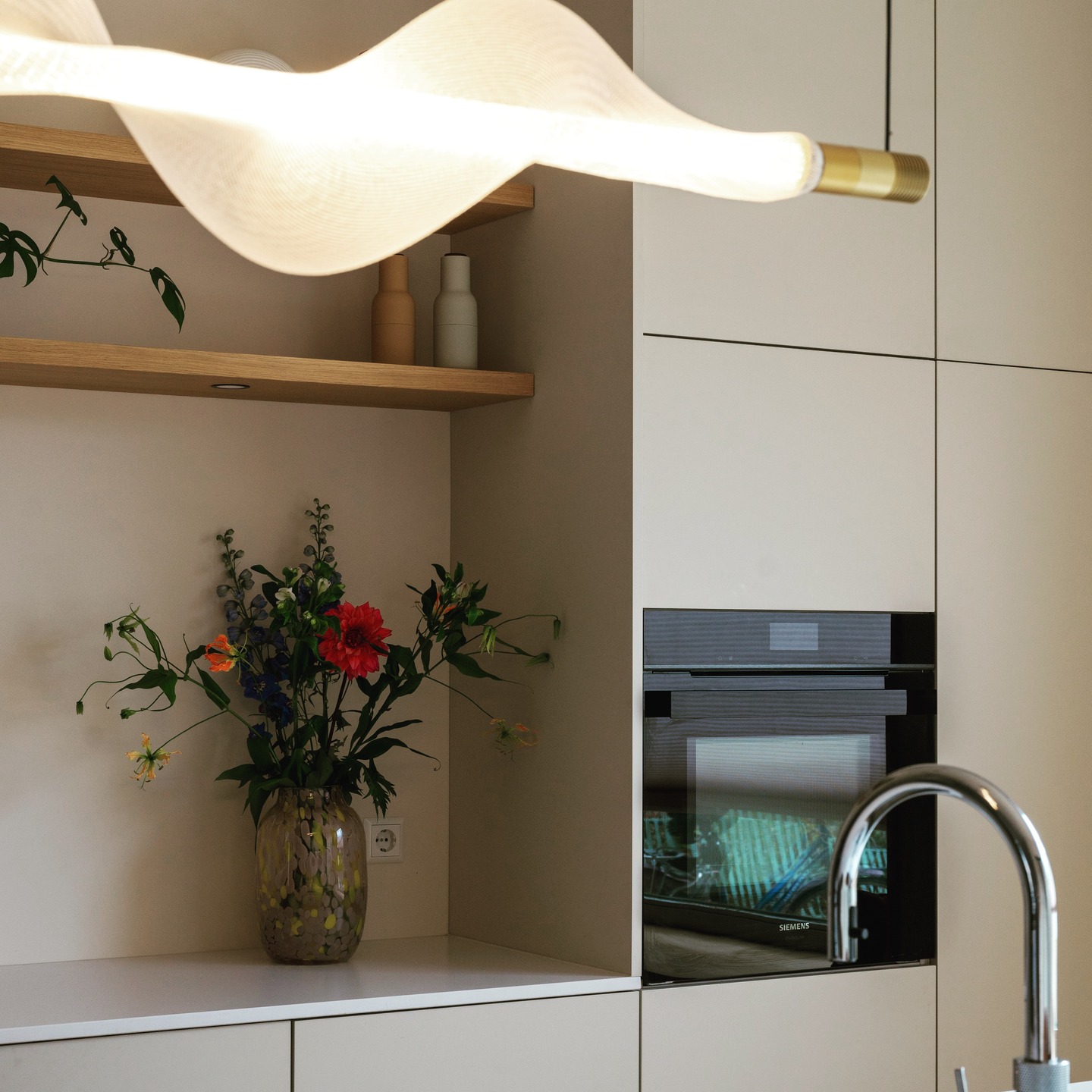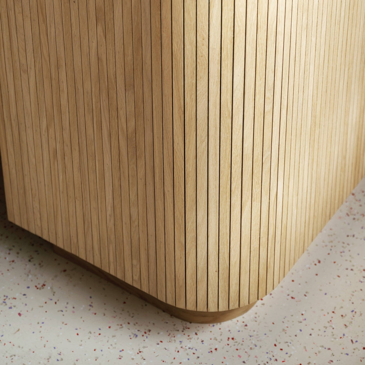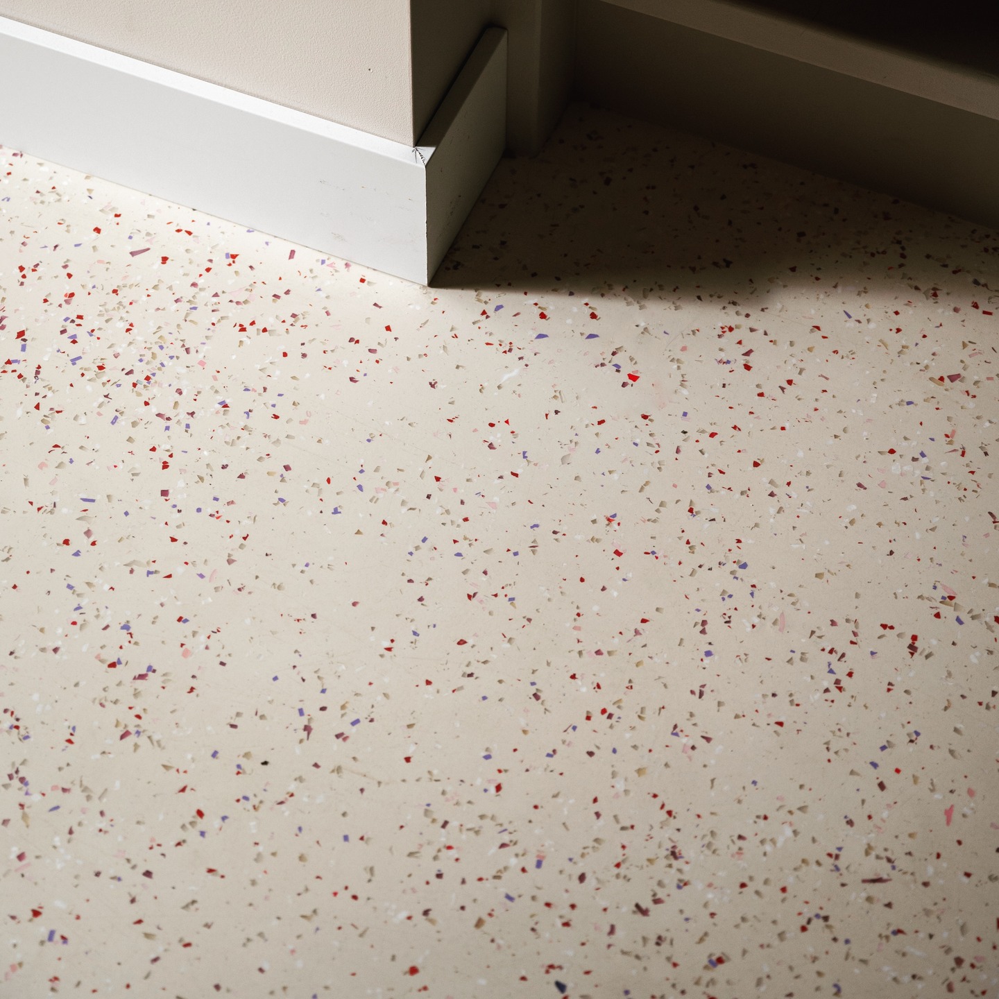 Serenity, warmth and a touch of confetti. The custom made recycled terrazzo is made from plastic waste material, locally produced.