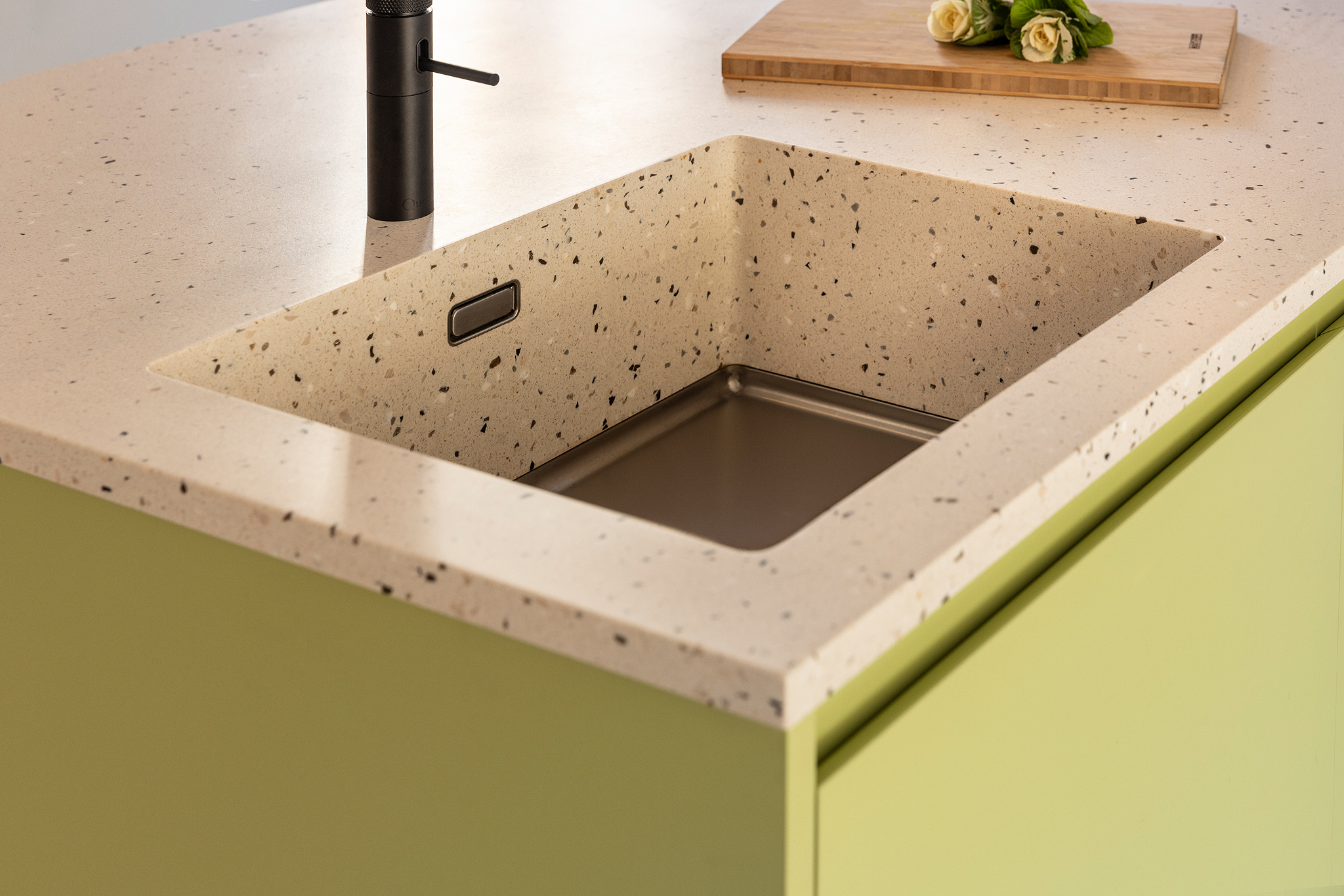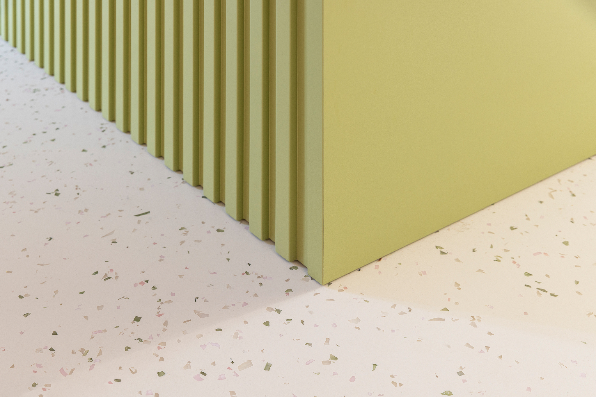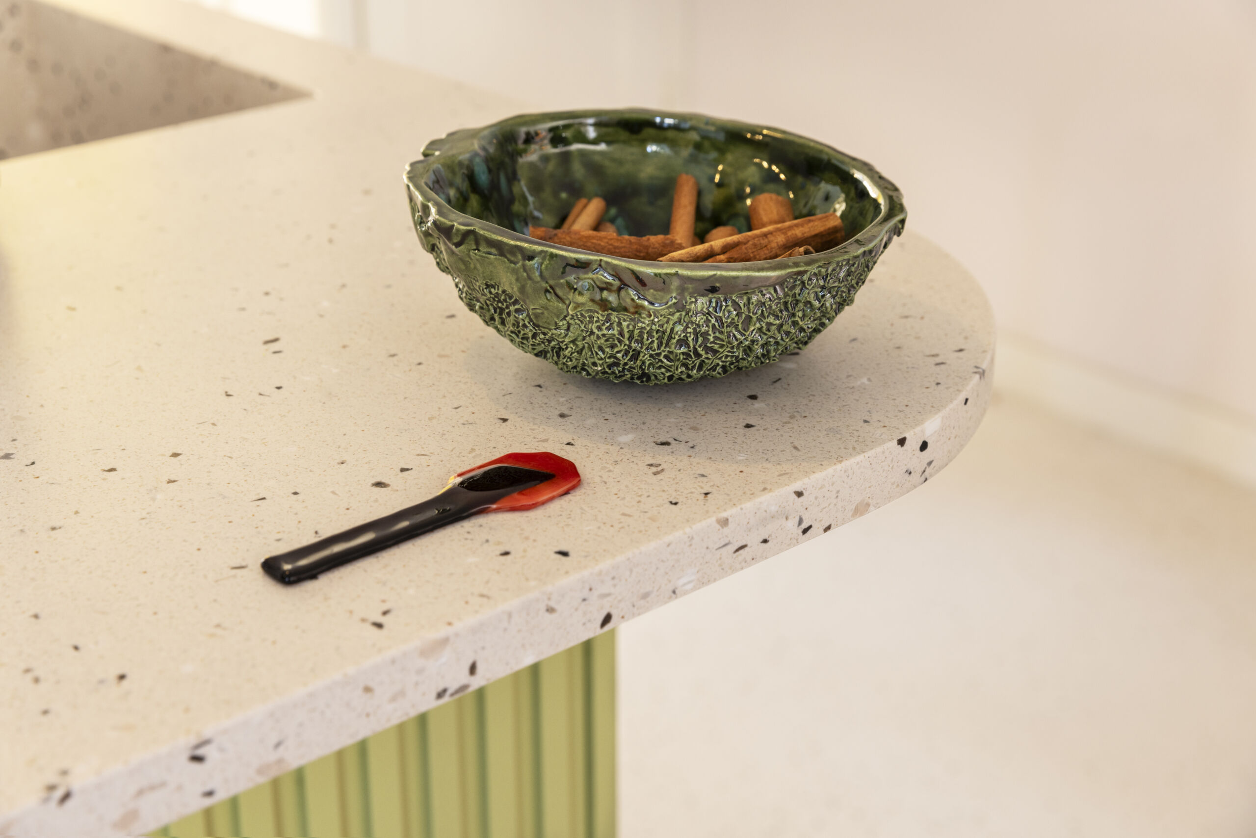 A beautifully refreshing design assembled by the client. Both the handmade kitchen from Houtwerff and the artisanal recycled terrazzo from The Good Floor really stand out. The colors pink and green give it a sparkling yet vintage ‘vibe’. In short… A kitchen with a touch of retro that combines beautifully with the special floor from The Good Floor.