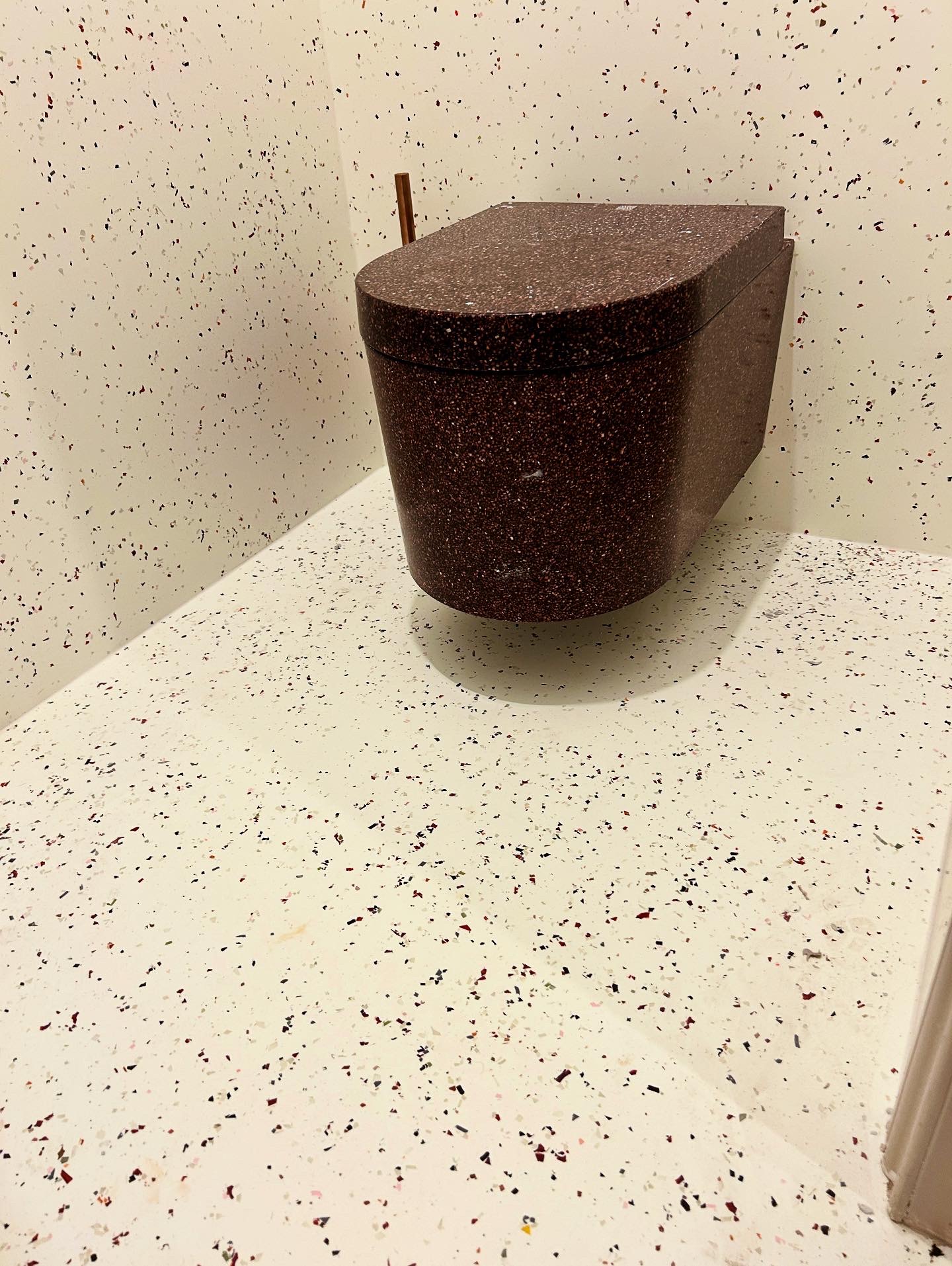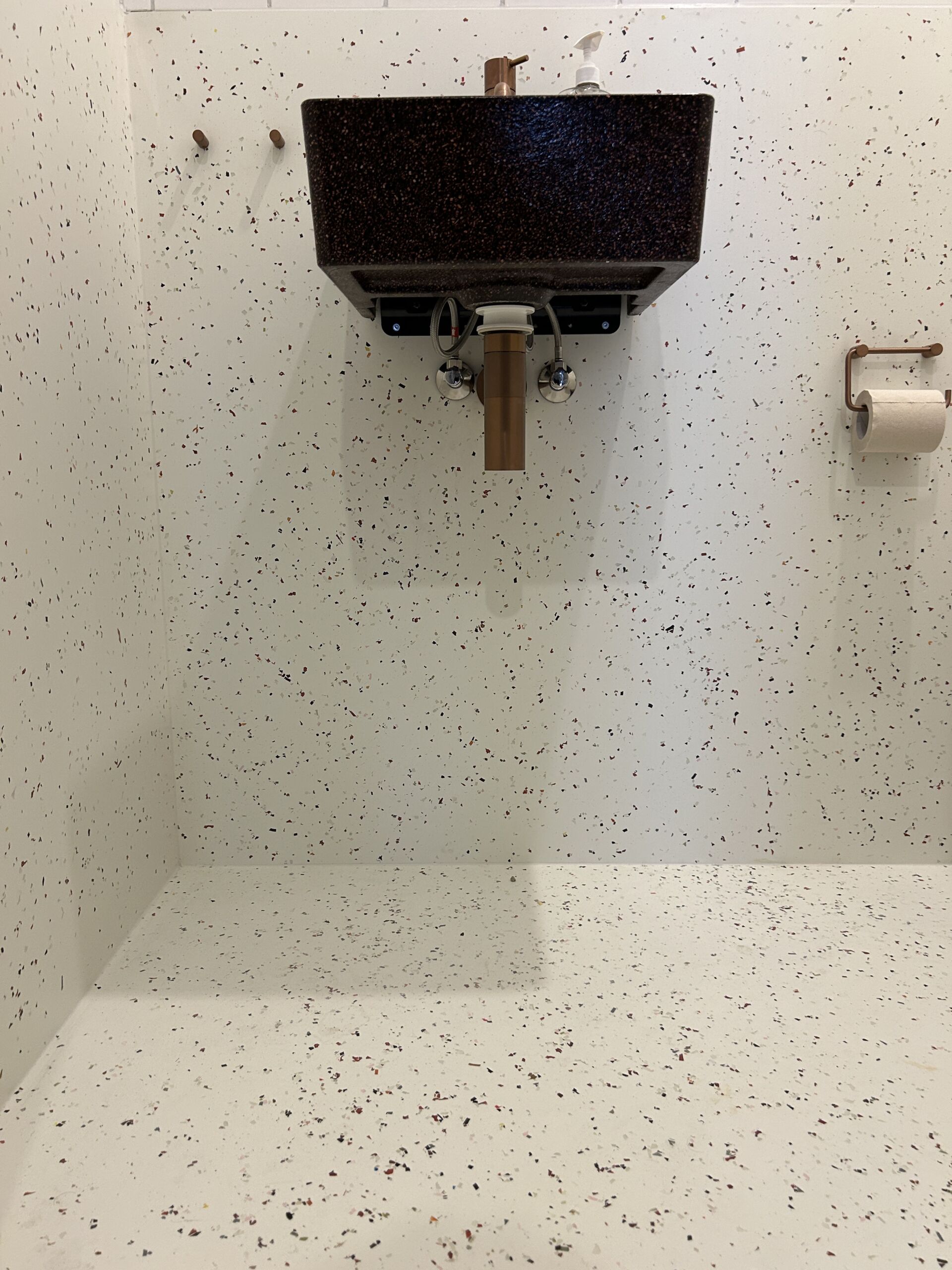 De panelen zijn uitermate geschikt als wandafwerking en/of lambrisering en combineren esthetiek met duurzaamheid. Dankzij de toepassing van gerecycled terrazzo kan de vloer naadloos doorlopen in de wand, wat zorgt voor een strak, harmonieus en duurzaam totaalbeeld.